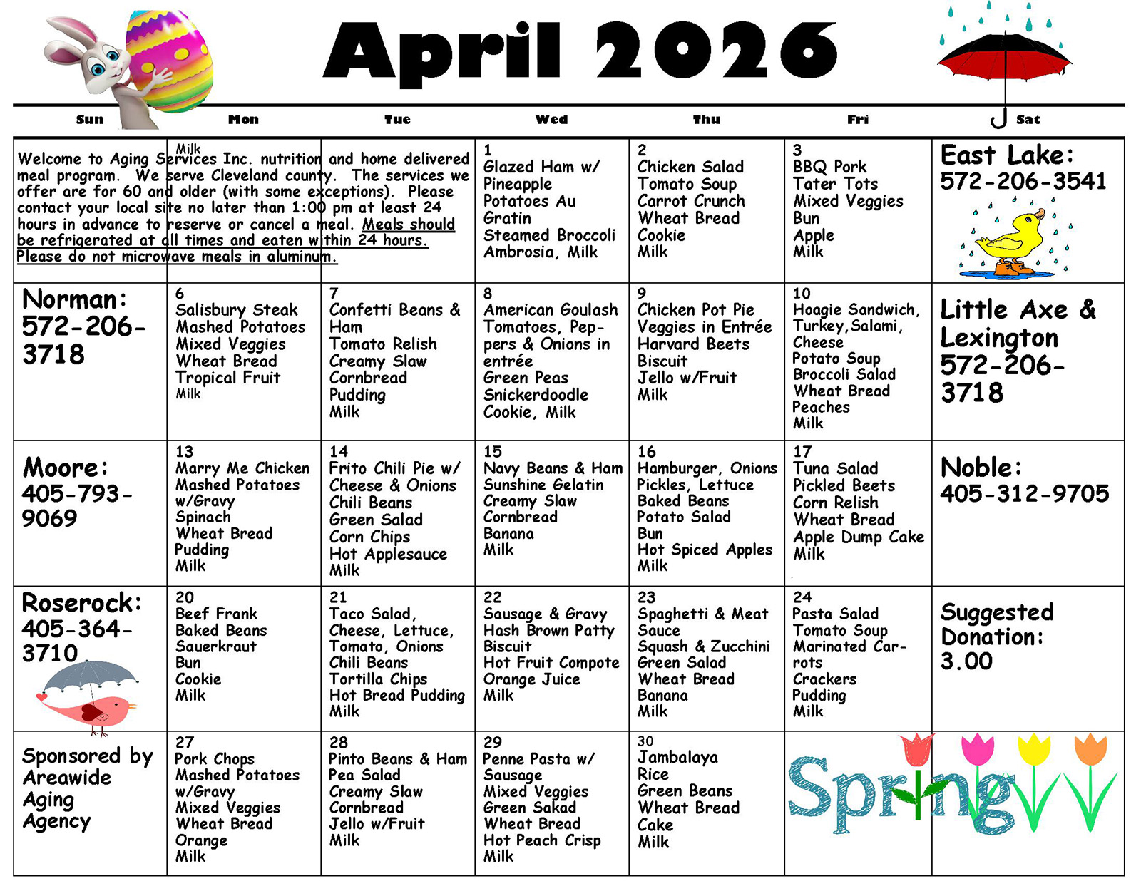 ASI provides lunch time meals, socialization, and educational programs Monday through Friday at five congregate meal sites throughout Cleveland County. There is a suggested donation of $3.00 for those age 60 and over and/or spouse of an individual age 60 and over. Adult disabled participants attending a meal site located in an independent housing facility are also eligible for a meal at the same suggested donation. There is a charge of $5.00 per meal for guests under 60 years of age.