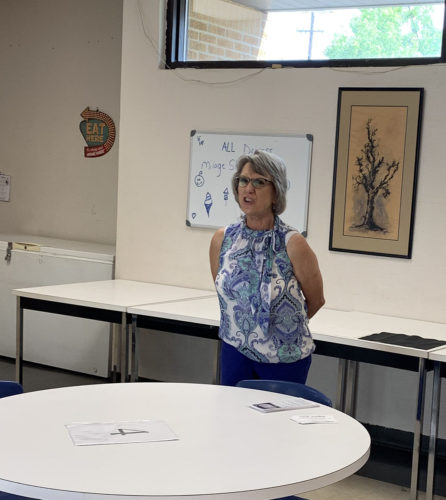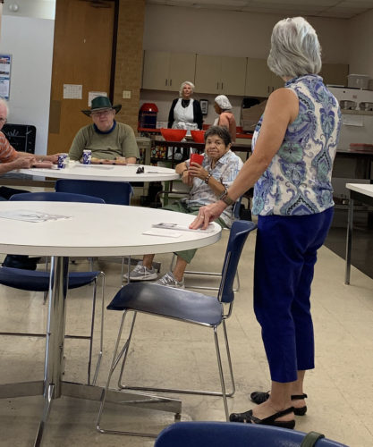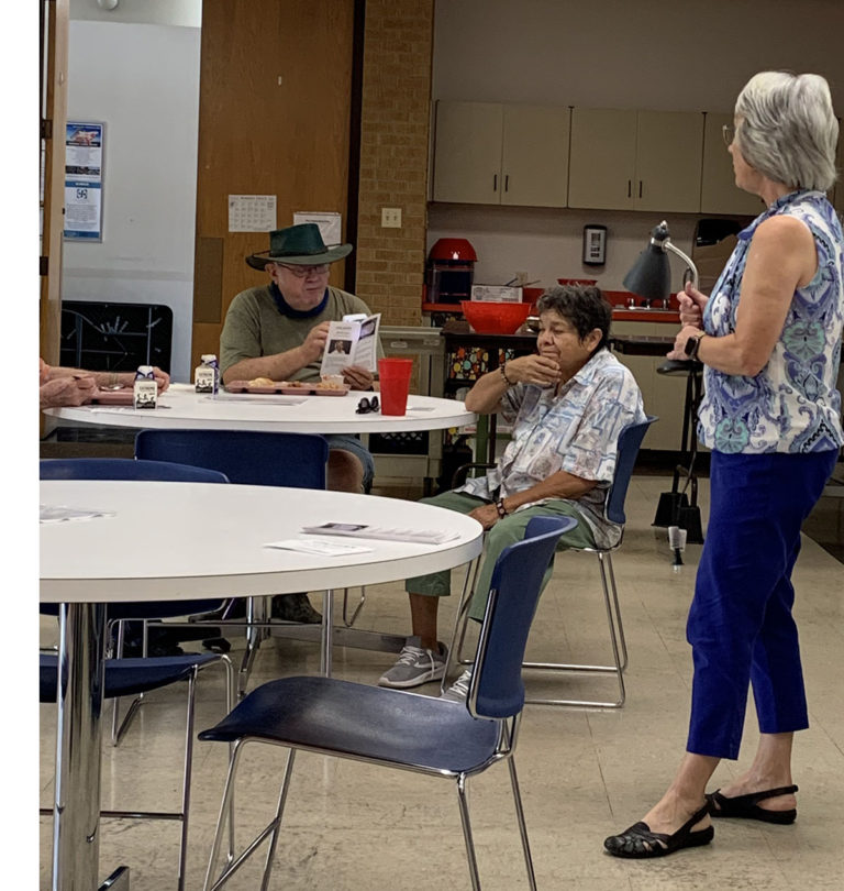 Marlene from Low Vision Strategies speaks to Norman seniors at the Norman Senior Meal Site
